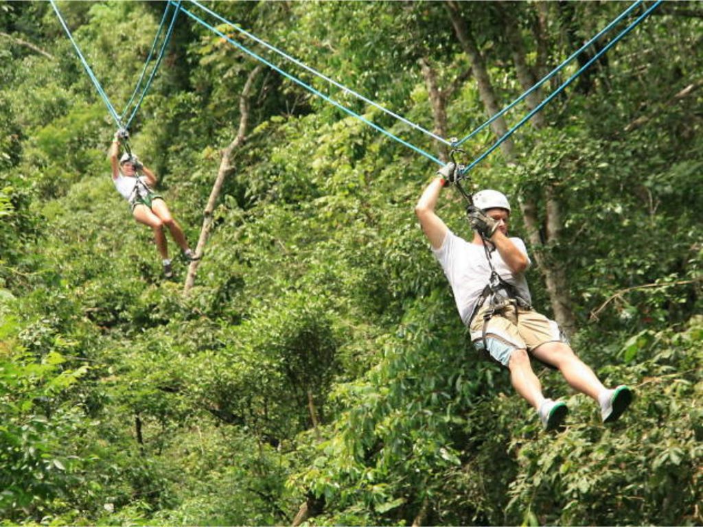 Zipline consists of a pulley suspended on a cable, usually made of stainless steel, mounted on a slope. It is designed to enable a user propelled by gravity to travel from the top to the bottom of the inclined cable by holding on to, or attaching to,the freely moving pulley.